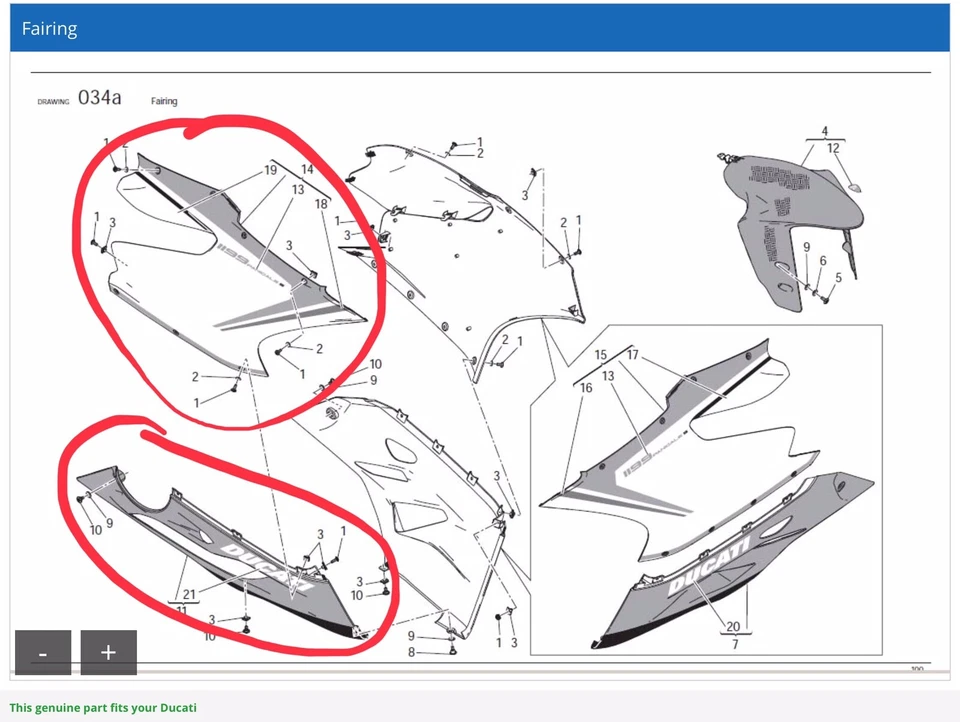 OE Genuine Ducati 1199 Panigale S Tricolore Upper & Lower Fairings RH